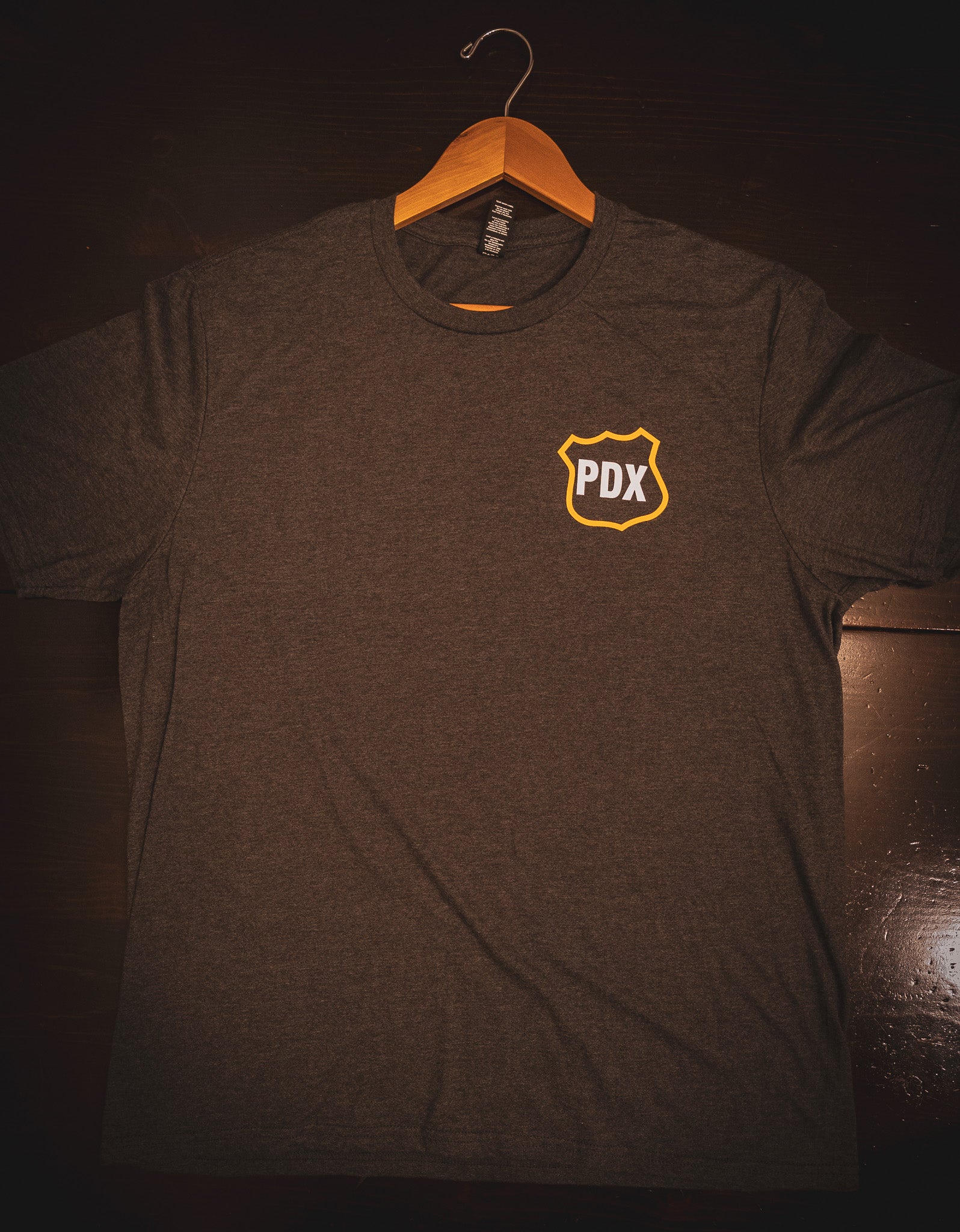 It features the PDX badge on the front and the Phillips Driveways skid steer design on the back, showcasing our trusted tagline Down to Earth Built Up Right.